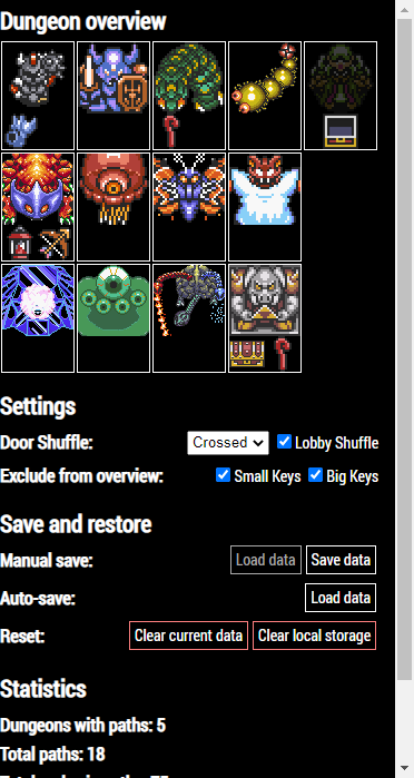The Dungeon Tracker is a helpful tool when playing with Door Shuffle. It can help you remember paths in a dungeon for later, solve switch or key puzzles or remember which item is needed for a path.
