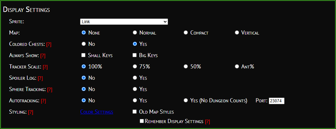 Use Autotracking will enable the listener for autotracking, which defaults on port 23074. Once you have all of your options selected, you can click on Launch Tracker and it will pop up the tracker. Note, if you have popups blocked, it may require you to make an exception for it.