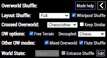 In either case, all settings can be changed later, though it's best to have them entered correctly from the start so the tracker can fill in certain screen transitions automatically (and doesn't fill in too much if you set the mode to something too restrictive). If you want to apply this automatic fill after changing the settings later (and finalizing them), click on What would be affected? or Accept changes in the yellow box below the mode settings if it appears, or Auto fixes on the overworld map.